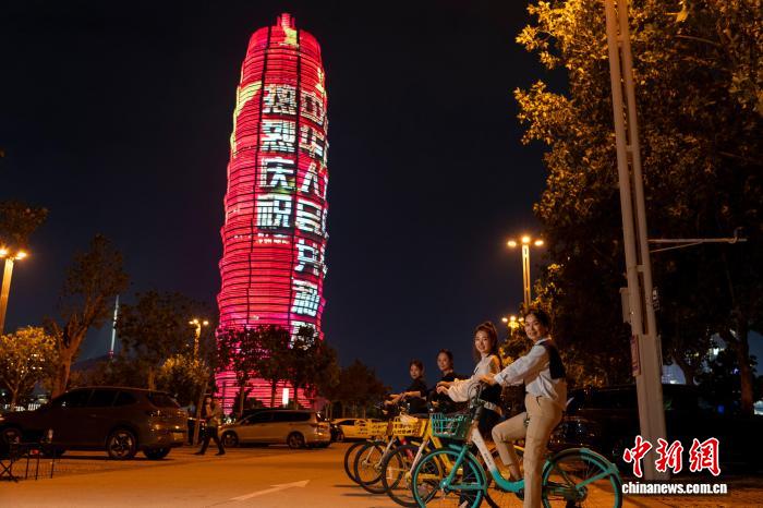 图为骑止市平易近取“表达故国”天标开影。中新社记者 李超庆 摄