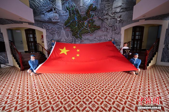 云南铁路博物馆首次展出中老铁路通车当日天安门广场升起的国旗